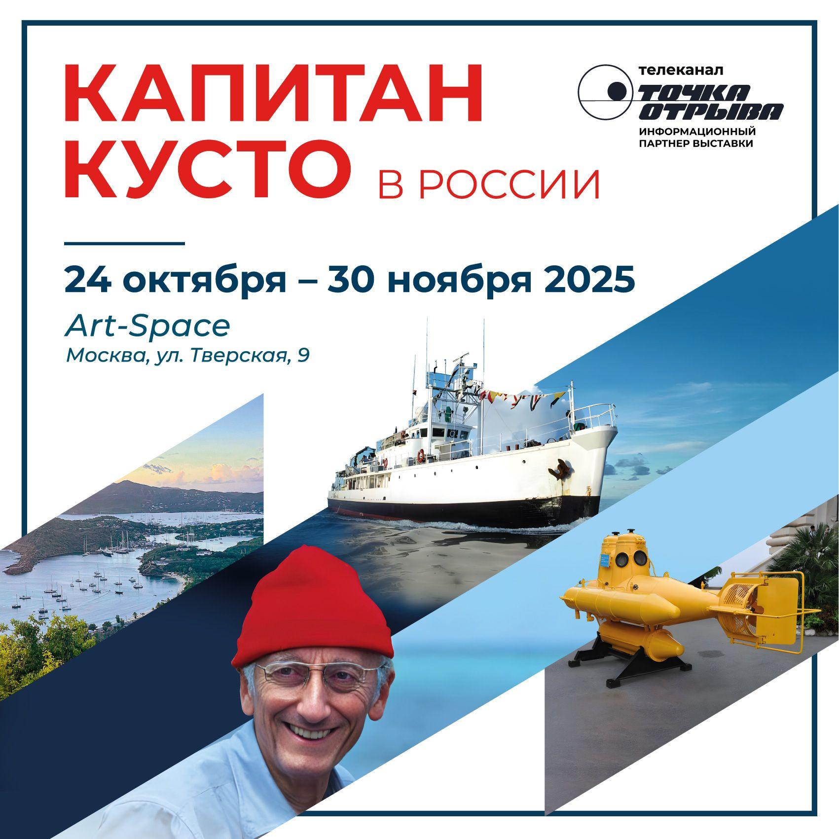 С 24 октября по 30 ноября в Москве при информационной поддержке телеканала "Точка отрыва" пройдёт выставка "Капитан Кусто в России", посвящённая жизни и наследию выдающегося французского исследователя и океанографа Жака-Ива Кусто.